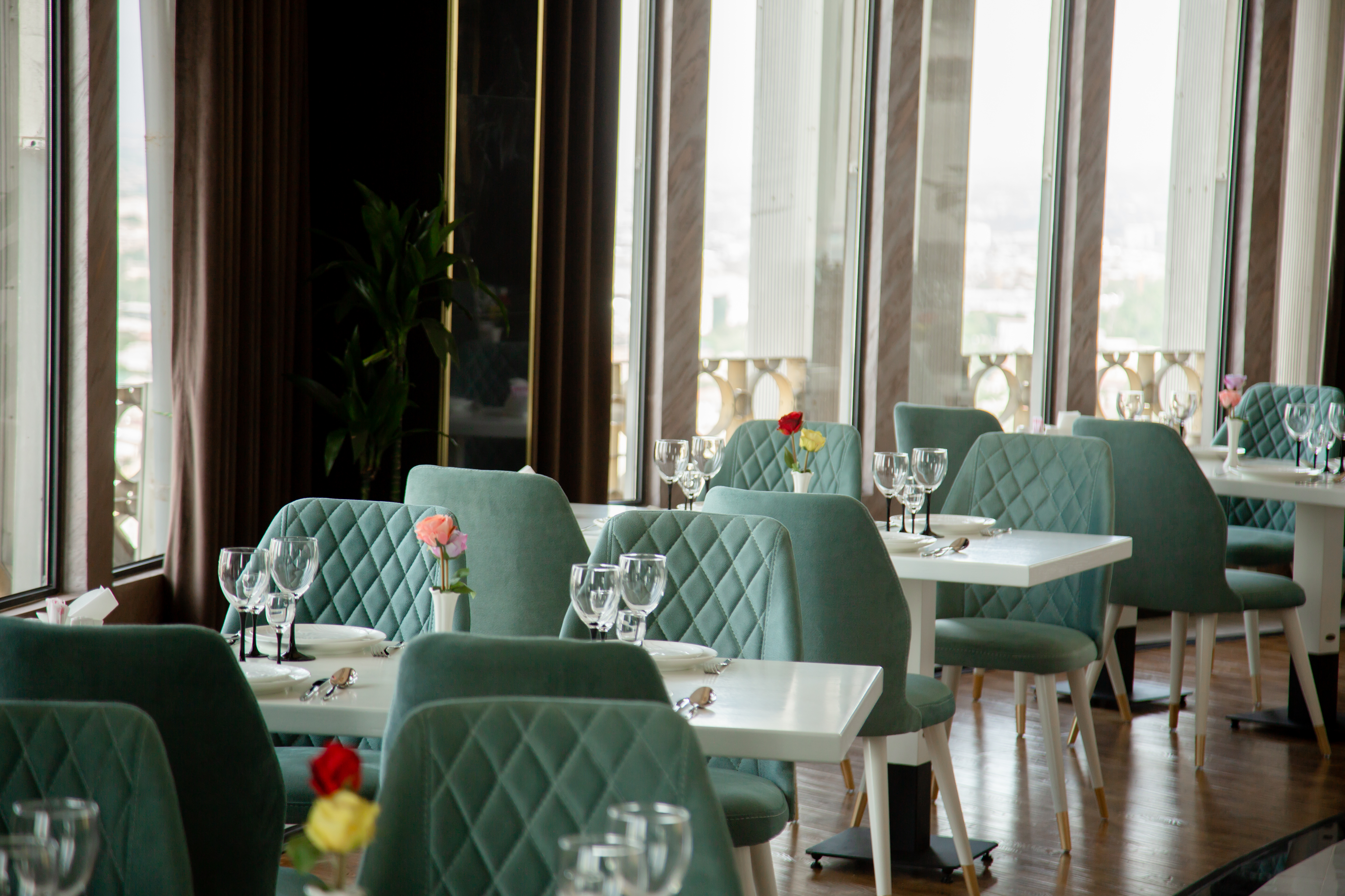 Одна из отличительных особенностей ресторана - вращающийся пол в этом зале. Посетители смогут совершить 45-минутную круговую экскурсию по ресторану, сидя на вращающемся этаже. Во время вращения вращающегося пола на 360 ° через широкие и высокие окна ресторана видны все районы Ташкента.
